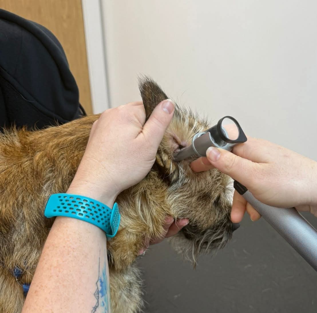 A lot of ear medications are not appropriate if the ear drum is damaged, so it is important to look down before starting any new course of treatment. We can then take samples to look under the microscope to diagnose different bacterial or yeast infections, vs allergies, and treat accordingly.