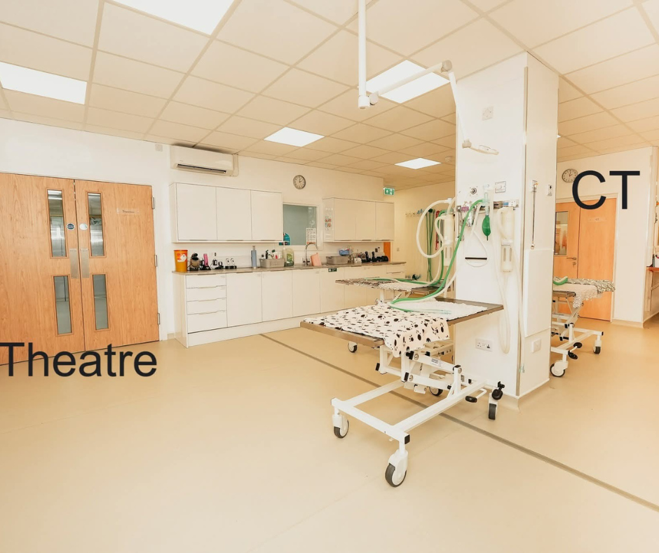 Prep also leads to x-ray, diagnostics (where they may have an ultrasound scan or a scope), CT, the lab and kennels. Situated within prep we also have an oxygen kennel to support critical patients after their surgery, or to support animals with breathing problems.